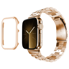 아이메이드잇 애플워치 호환 프리미엄 메탈 스트랩 밴드 + 케이스 세트, 로즈 골드